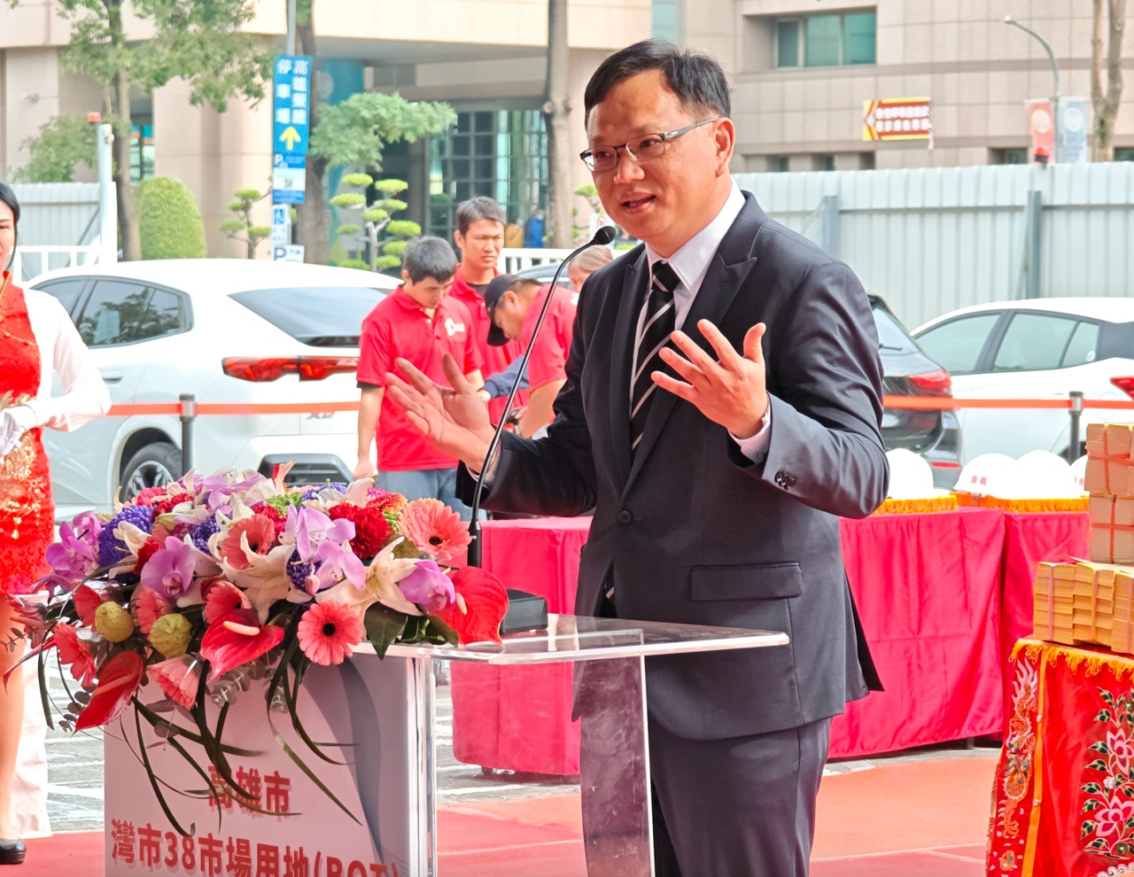 副市長羅達生表示,灣市38 BOT案為陳市長任內首件以市場用地BOT招商成功的案例,基地位處高雄榮民總醫院周邊,鄰近高鐵左營站,具備醫療、住宅與交通優勢,市府透過完善招商規劃與投資環境整備,並藉由BOT公私協力模式,引進民間投資能量,加速公共建設推動,成功吸引統一超商投資,由市府提供市場用地,再交由民間企業投資興建並經營一段時間後,最後經營權移轉給市府的模式,基地規劃興建複合式現代化購物市場及停車場,預計117年完工營運,期待開發案可以為榮總周邊一帶提供完整的社區生活服務、觀光休憩及地區型的商業服務。