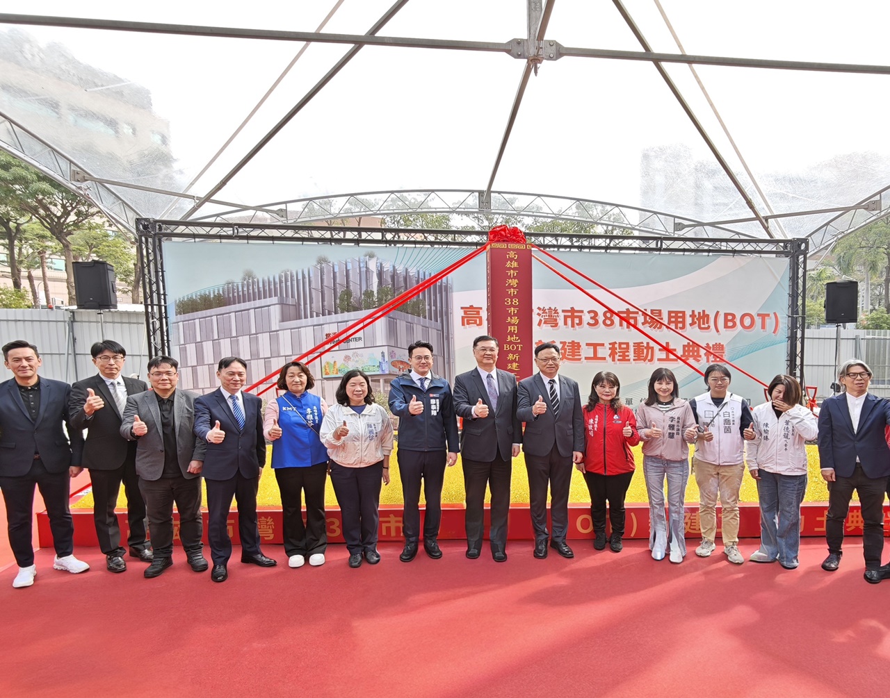 高市府攜手統一超商「灣市38 BOT案」於今(16)日舉行動土典禮!由高雄市政府副市長羅達生、統一超商股份有限公司協理李宗賢及議員、在地里長等貴賓親臨祈福起鏟,共同見證陳其邁市長上任後,首件公有市場用地BOT成功開發案例,未來灣市38 BOT案將興建地下二層、地上六層的綜合型建築「悠活生活館」,預計117年完工營運,將為高雄榮總周邊生活圈導入多元商業服務及生活機能,帶動區域經濟發展並提升整體生活品質。